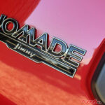 注目してほしいのが背面タイヤ右下に装着されるジムニーノマドのエンブレム。じつはこれ、かつてのエスクードノマドに貼られていたデカールを現代風にアレンジしたモノなのだ。ほぼ同じデザインなのだが、それがさらに洗練されたデザインとなったのもお見事!!