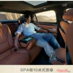 漢Lも唐Lもそれぞれのカテゴリーのフラッグシップだけあって、車内のおもてなし装備も至れり尽くせり。フロントシートはレッグレスト付きの11枚の層で構成される重厚なもので、リアシートには10点式のマッサージ機能が付く。センターアームレストには温冷庫も搭載可能だ。
