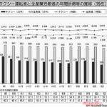 タクシー業界の経営悪化は深刻だ。上のグラフは、国土交通省がまとめた「タクシー事業の経営事業の推移」だが、輸送人員は右肩下がりで激減している。