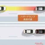 さらに、ブラインドスポットモニターの安心降車アシスト(SEA)、後方車両への接近警報の追加、運転状況の先読みアシストを行うプロアクティブドライビングアシストを採用するなど、車両のみならず、乗員も危険な状態に近づかないようにする内容となっている。