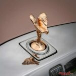 センターにアークティック・ホワイトのピンストライプが入った22インチディスクホイール、ポリッシュ仕上げのパンテオングリル、そしてローズゴールドのスピリット・オブ・エクスタシーが、静かなる威厳を放っている。