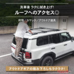 ランドクルーザー250の大型ボディは、ルーフキャリアや天井部分へのアクセスが難しいという課題がありました。今回登場したラギッドリアラダーは、洗車後の拭き上げ作業をはじめ、カヤックやキャンプ道具の積み下ろしをサポート。特にアウトドアシーンでは、車両の利便性を格段に向上させます。