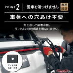 さらに、車体への穴あけ不要の取付方法など、使いやすさを重視した特徴が詰め込まれています。
