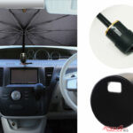 とくに目を引くのが、傘のように開いてフロントガラスを覆う傘型サンシェードに、傷防止シリコンキャップを組み合わせた新モデル。