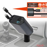 「巻き取り式4 in 1 カーチャージャー」は、車内での使い勝手に特化したモデルです。ケーブルを少し引くと自動で収納される巻き取り構造を採用しており、使わないときにだらりとしたコードが足元に垂れないように配慮されています。