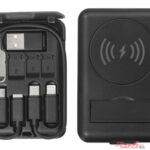 またスマホやタブレットの充電環境を整えたいユーザーに向けたガジェットも登場。そのひとつが「ワイヤレスチャージャー&データケーブルセット」です。スマホ周りの接続をひとまとめにする発想で、最大出力60ワットに対応し、端子を差し替えることで7通りの接続パターンを実現します。