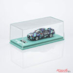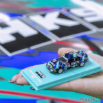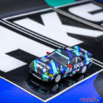 京商はその空気を、とことん1/64で再現してきた。バンパーやフェンダーのエッジ、スポンサーステッカーの配置、アルミホイールのデザイン、サイド出しマフラーの存在感、ロールケージを含むインテリアの作り込み。