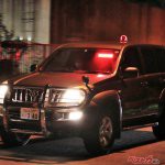 臨場したランドクルーザープラドは元々要人を警護する警護車として2005年初旬に国費で配備され、一部の道府県で活躍している車両である。