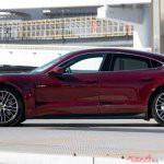 2021年3月、日本でも新しいEVが加わった。これが「クロスツーリスモ」だ。リアゲートを備えたSUV的なイメージのスポーツカーは、さらに使い勝手が向上している。特にリアのラゲッジスペースは後席のヘッドスペースも充分。室内高も47mm高くなっている。現時点でのバリエーションは4ドアサルーンが3グレード、クロスツーリスモも3グレード用意されている。