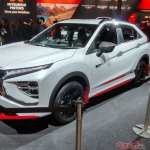 三菱SUVの2台にRALLIART製パーツを装着したカスタムモデル。各々ボディカラーにはホワイトダイヤモンドを採用し、フロントとリア、サイドにはレッドのRALLIARTカラーを差し色として採用し、スポーティさを表現。
