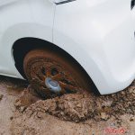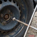 3.ジャッキアップする前にパンクしたタイヤのナットを車載工具で緩めておく