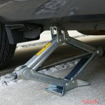4. ジャッキアップポイントと呼ばれるジャッキを掛けてもいい場所にジャッキを噛ませてクルマを浮かせる