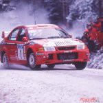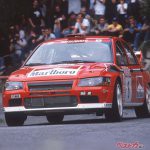 三菱自動車は1992年までギャランをベース車として参戦していたが、その高性能な4気筒ターボエンジンと4WDシステムをコンパクトなボディに収めた初代ランエボを1993年のWRC開幕戦から投入している。