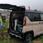 2023年9月9日(土)、静岡県富士宮市にある「ふもとっぱら」キャンプ場にて、三菱自動車取材「スターキャンプ2023」が開催。そこでこの日から発売となる「デリカミニ×Coleman」コラボラッピング車が登場し、駆けつけた記者に紹介された。あいにくの霧雨が舞うキャンプ場で、存在感を放っていたデリカミニColeman仕様。実物、かなりいいです。