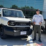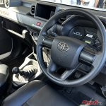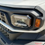 さてJMSで見た時よりも、目の前のハイラックス・チャンプは低く、コンパクトに見える。なぜか? JMSに出展されたのは、ロングホイールベースモデルで全長が5300mmのモデルなのに対し、目の前のモデルは4970mmと5mに収まるショートホイールベースモデル。