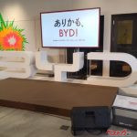 同日からタレントの長澤まさみさんが「ありかも、BYD!」のテレビCMメインキャラクターとして登場していた。それを受けた同イベントは「あなたのスキ!が、もっとe-モノに!」をコンセプトにBYD製EVの魅力に触れてもらい、EVのある生活を体験してもらおうと企画したもの。