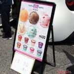 販売されているサーティワンアイスクリームは8種類。1つ400円となっている。時間ごとに移動して販売しているので、いつどこで販売しているかは、富士スピードウェイのオフィシャルX(旧Twitter)をチェックするのがオススメだ。