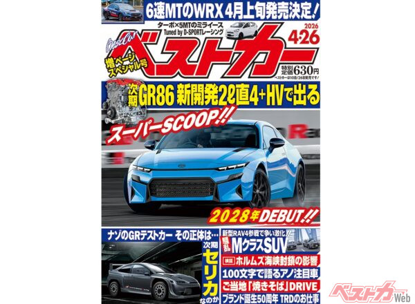 次期GR86が新開発エンジンで2028年登場!!『ベストカー4月26日号発売!』