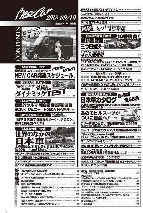 自動車総合誌「ベストカー」最新号が、2018年8月10日に発売。今号の巻頭では、2020年までに登場する国産8メーカーのニューカースケジュールを完全網羅。また大人気、ジムニーとN-VANの試乗記も掲載している。内容盛りだくさんの9月10日号も必見。