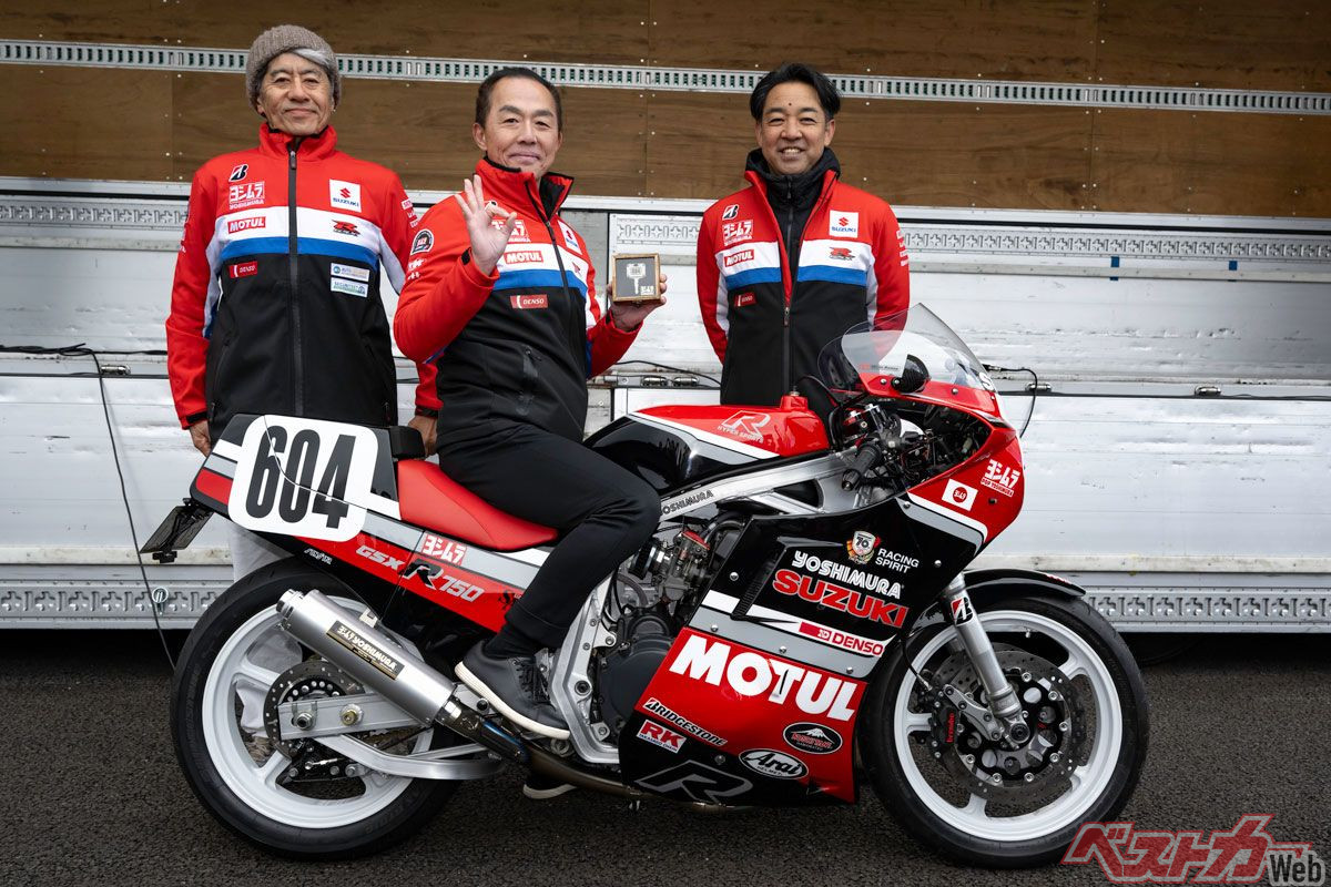 2025年の東京モーターサイクルショーで展示され、大注目を集めたヨシムラGSX-R750 #604コンプリートマシン。10月にはこの車両がオークションで販売され、1241万円という驚きの価格で落札された。ヨシムラファン、いや、すべてのバイクファン垂涎のこのマシンを手に入れたのはどんな人なのだろうか。1月11日に行われた納車セレモニーで落札者にインタビューを敢行。ヨシムラへの熱い想いをうかがった。