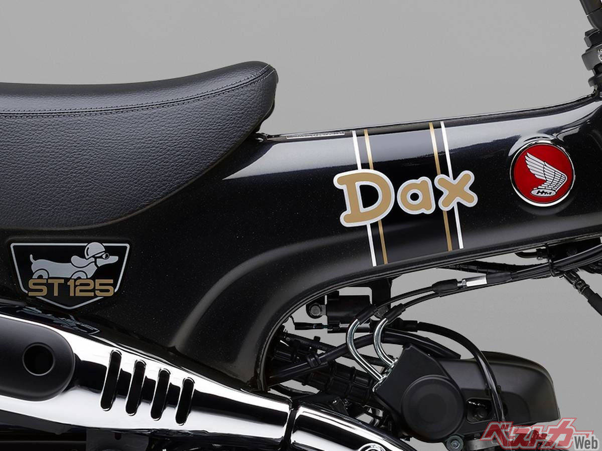 今回のカラーバリエーション変更では、新たに「パールホライゾンホワイト」が設定された。この新色は車体全体に上質感を与え、ダックス125が持つ独特のプロポーションをより際立たせる仕上がりである。一方で継続色となる「パールシャイニングブラック」についても、単なる継続販売にとどまらず、フロントフェンダーなどの配色を変更することで、従来モデルとは異なる新鮮な表情へと進化を遂げた。
