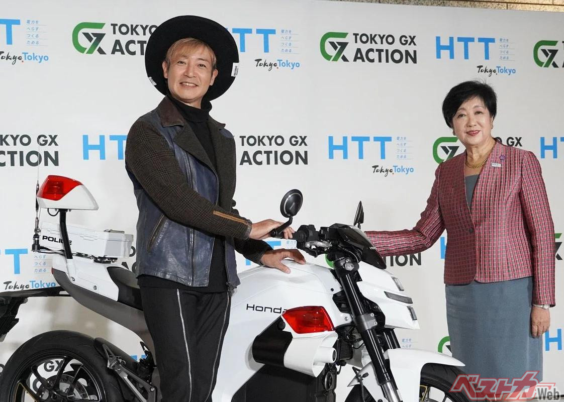 なお“国産EV白バイ”とは、Webike+でも既報のとおりホンダWN7の白バイ仕様を指す。これも「2035年までにバイクを100%電動化する」目標の一環。小池都知事は以前から「国産メーカーのモーターサイクル型電動バイクを白バイにしたい」という意向があり、ホンダがその要望に応じた形だ。