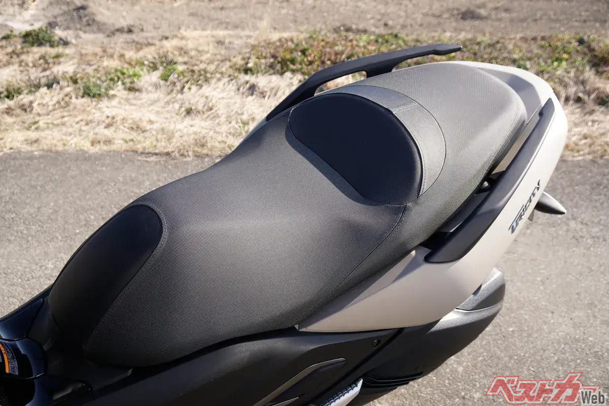 自由度の高いライディングポジションを実現しているシート。グリップも握りやすい形状で、タンデマーの居住性もいい。