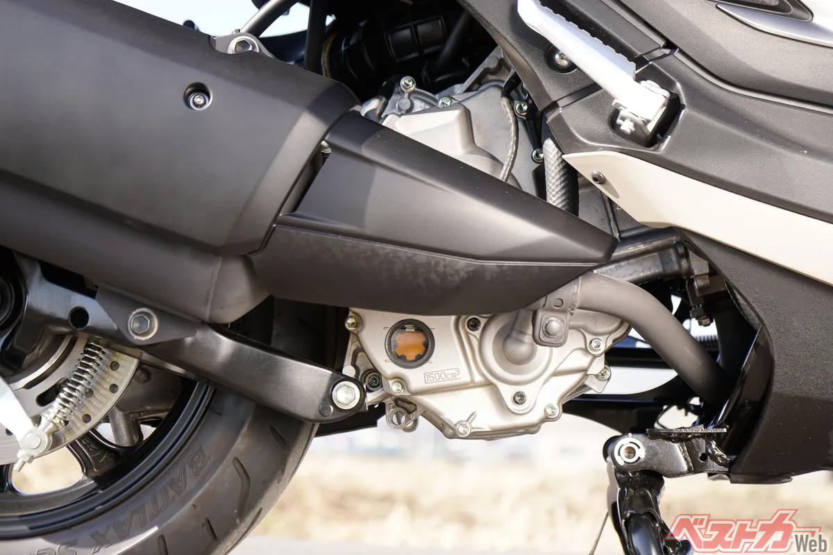 前後サスペンションは、状態のいい舗装路ではスムーズにストロークして乗り心地は快適。スピードが上がるほどマシン挙動はフラットになり、100km/h巡航でも安定性が感じられる。大きなギャップを通過する時は身体に衝撃が伝わってくることもあるが、荒れた舗装路を通過する際は衝撃のカドを吸収し、ゴツゴツした感触はない。シートの前後長に余裕があり、ライディングポジションの自由度も高く、タンデムでも窮屈さを感じない。