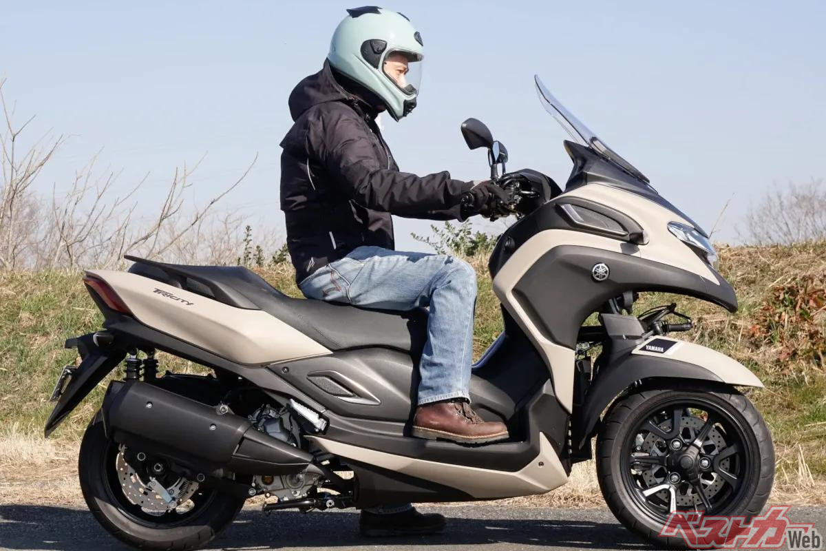 足を着きやすいようにフロア部がえぐられているが、「トリシティ125/155」より車体サイズが大きく、両足を着こうとするとつま先立ちとなる。