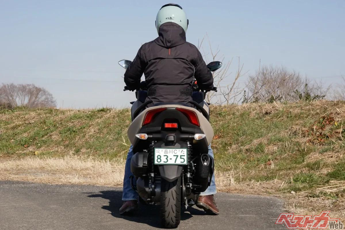 ライダーの身長は172cm、シート高は795mmだが、足裏までしっかりと着ける。シートの前後長に余裕があり、フロア前方に足を伸ばした姿勢もとれる。
