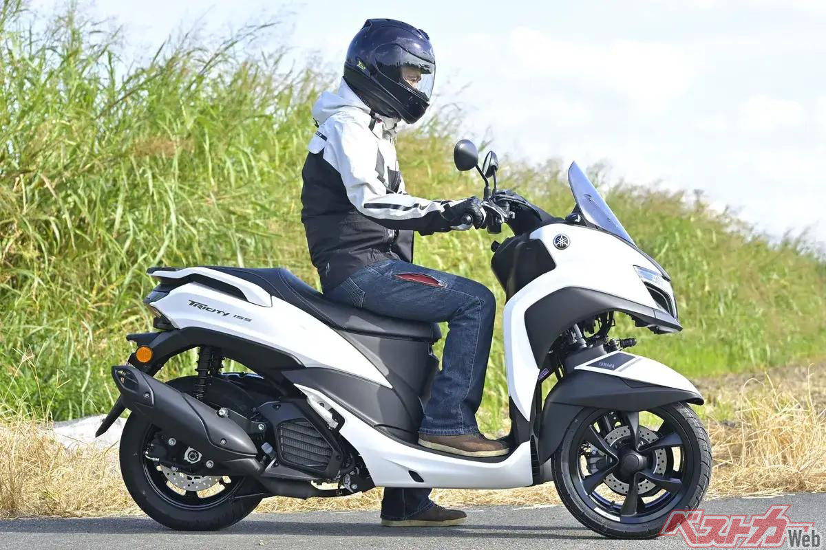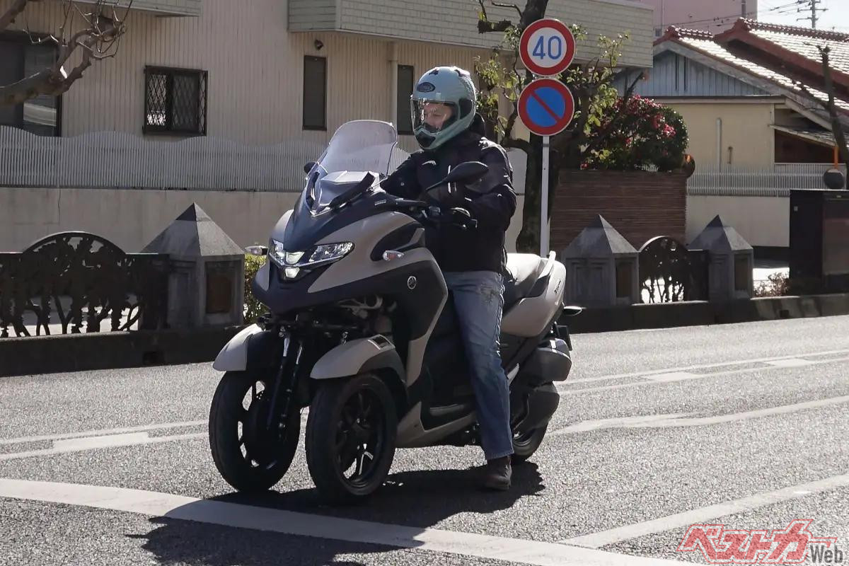 筆者はこれまでに「トリシティ125/155」を何度か試乗し、その乗り味に好印象を抱いていた。前2輪が一般的な2輪車以上の接地感を伝えてくれるので、コーナリングの進入で車体をリーンさせていく時にも安心感があり、それでいて直進時の安定性も高く、クルーザーのような直進安定性とスポーツモデルのようなコーナリング性を両立しているように感じられたからだ。