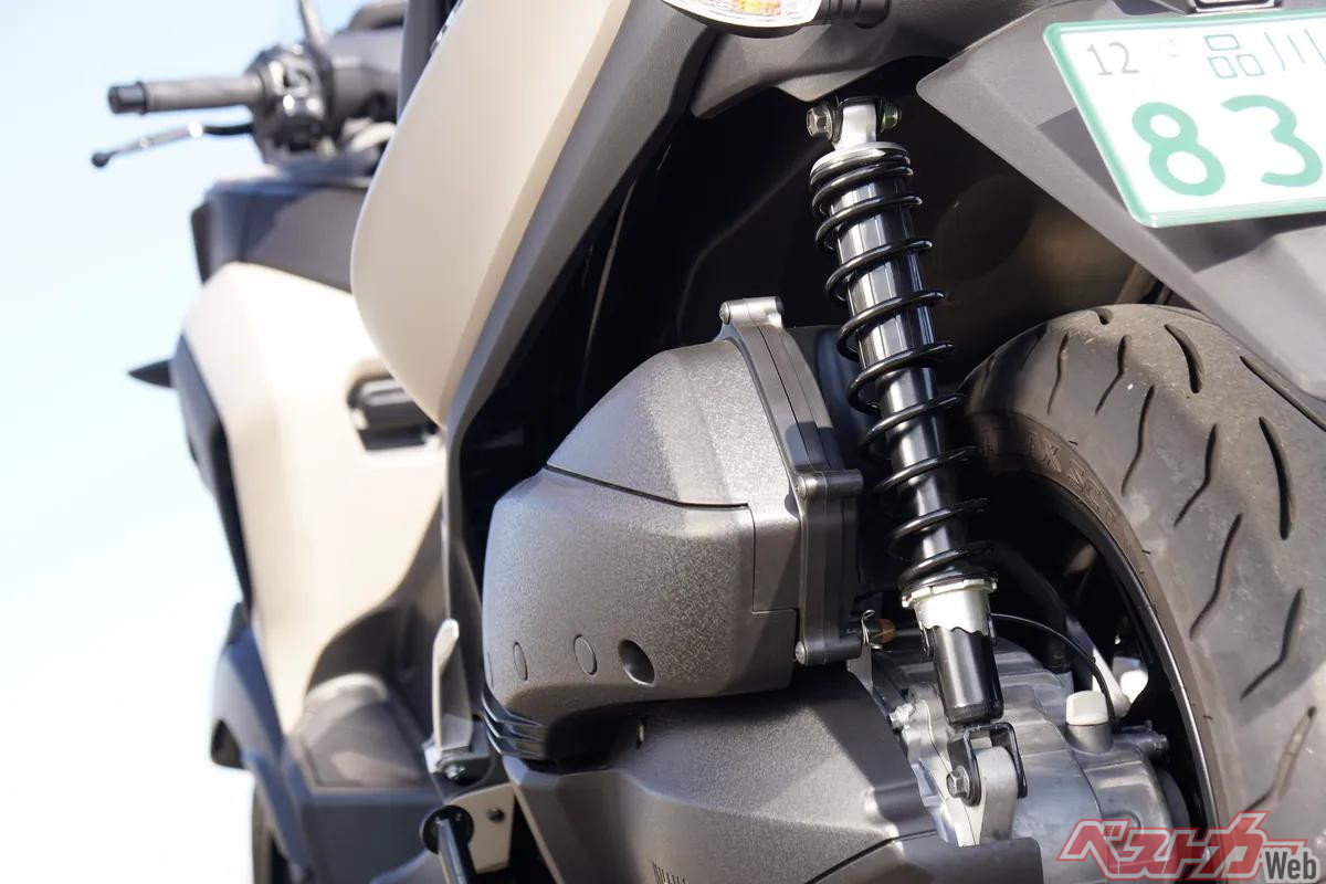 欧州向けのスポーツスクーター「XMAX300」の「BLUE COREエンジン」をベースに、インジェクションセッティングを変更。市街地走行で優れた加速性能を発揮する。