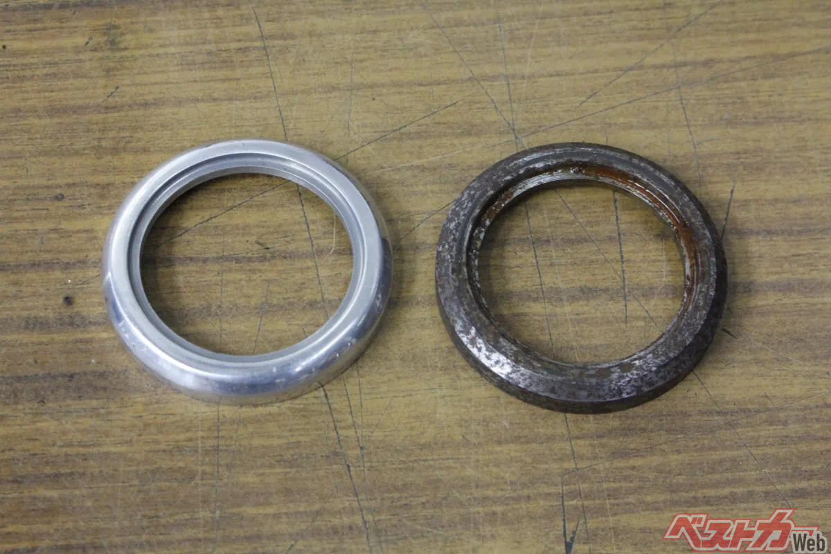 「サビの首輪」が目立つ、フロントフォークのカラーの削り出し製作【画像ギャラリー】