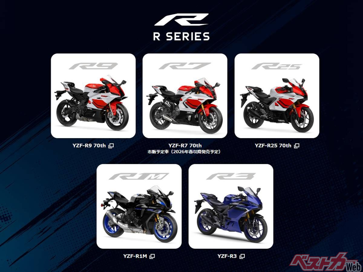 ・YZF-Rシリーズ:YZF-R1M、YZF-R9、YZF-R7、YZF-R3、YZF-R25