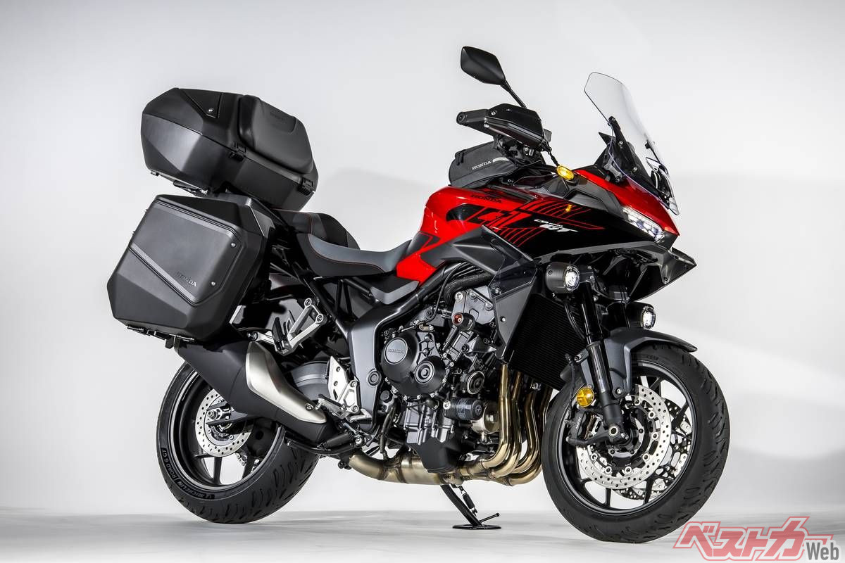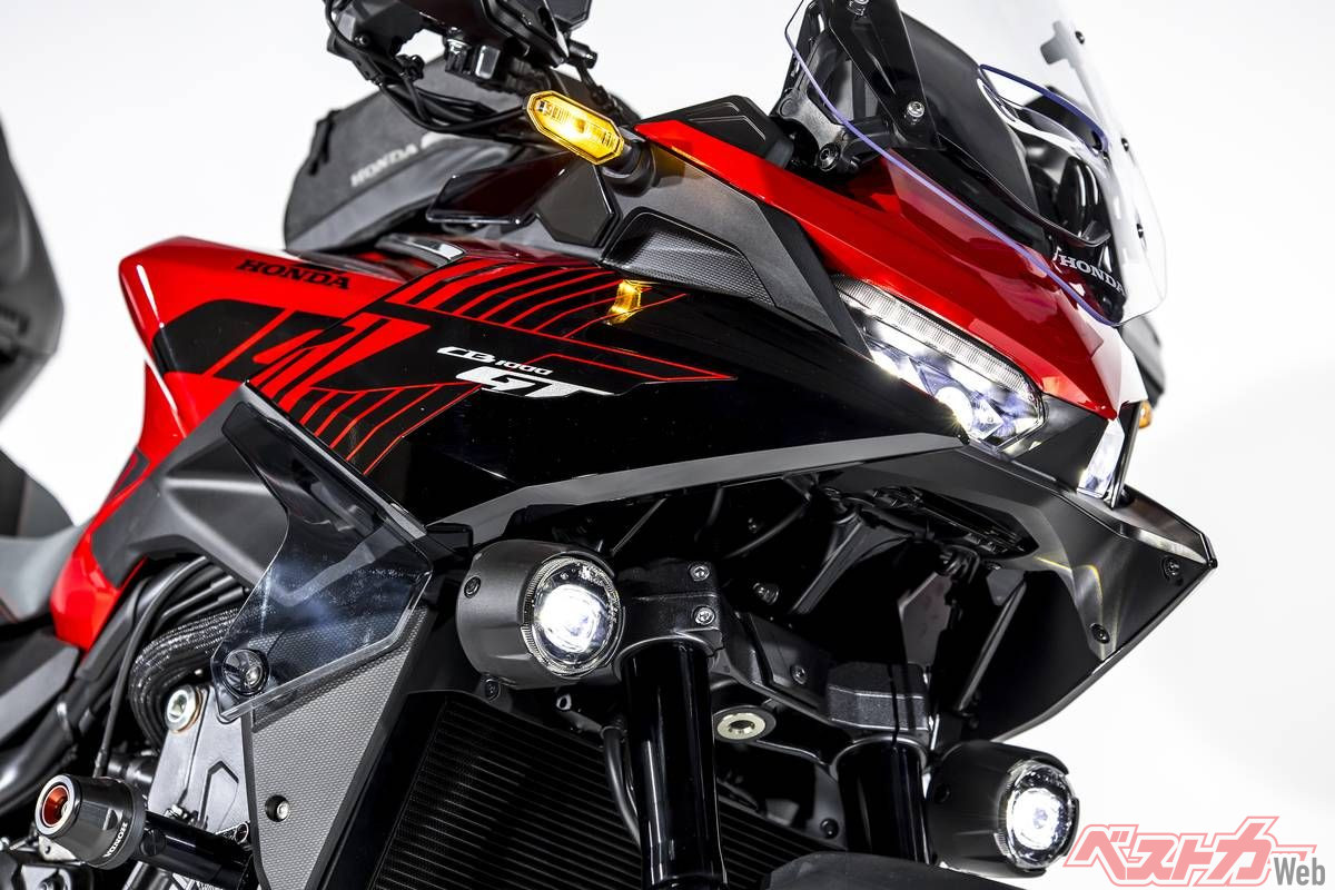 昨年秋のミラノショーにて世界初公開された「CB1000GT」は、同社のフラッグシップ・スポーツネイキッドであるCB1000ホーネットのプラットフォームを活用しつつ、オンロードツアラーとして改良を受けたスポーツツアラーモデルだ。パワーユニットはベースと設計を共有する1000ccの直列4気筒エンジンだが、シートフレームや電子制御サスペンション、搭載空力特性を追求した大型のハーフカウルとスクリーンを採用。同じくCB1000ホーネットの兄弟機として昨年発売された、CB1000Fとはまったく異なる個性的なモデルとなっている。
