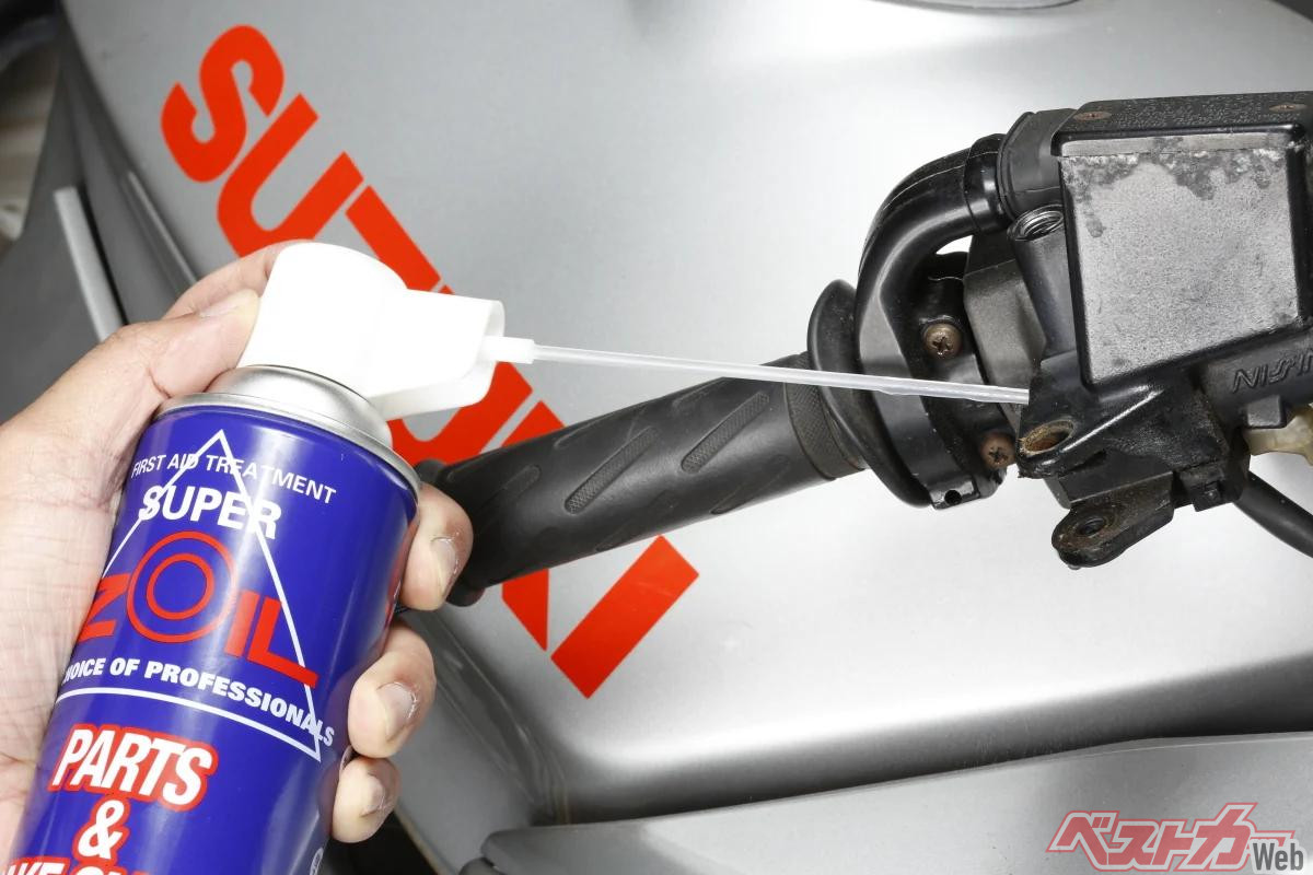 そこまでの手間を掛けられない時には、マイナスドライバーや平ポンチなどでマスターピストンを押し込みながらパーツクリーナーやMR20などで清掃するのも有効です。この時、ピストンを深く押し込めるよう一時的にブレーキパッドを取り外しておくのも効果的です。パーツクリーナーなどを吹き付けながら何度かピストンをストロークさせれば、レバーを握り始める際のスムーズさが蘇るはずです。