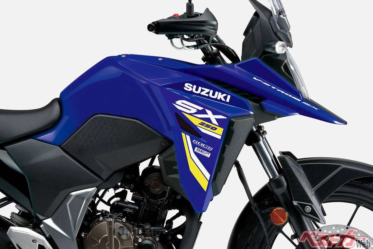 【新車】2026年新型「Vストローム250SX」にはブルーが新登場! 59万9500円で3月発売 価格は7700円のアップに