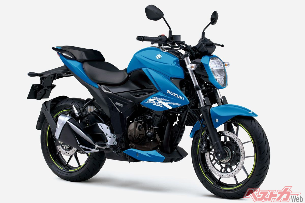 ネイキッドのジクサー250には、鮮やかな「グラススパークルブラック/トリトンブルーメタリック」、洗練された「パールグレッシャーホワイト/マットプラチナシルバーメタリック No.2」、精悍な「グラススパークルブラック」の計3色を展開する。