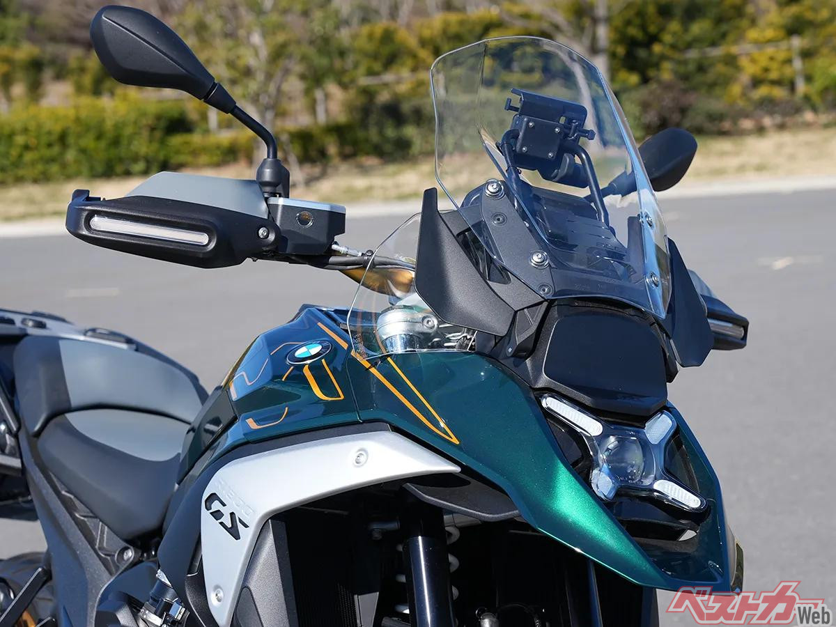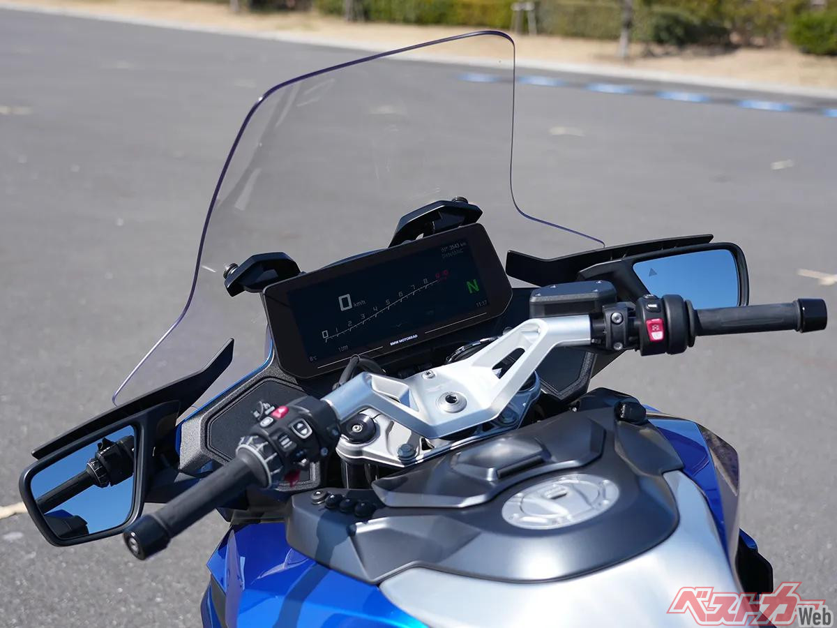 今回の試乗で、最も取り回しに苦労したのは、この「R1300RT」だった。唯一フルパニア状態であったせいもあるとは思うが、まず押しまわしがR1300GS Adventure並みに重たい。跨ってみるとシートの幅があるためかR1300GS Adventureの次に足つきが悪く、スタンドを払うために車体を起こそうとすると、重くて筆者の足の長さでは少し地面を蹴る感じにしないと起きてくれない。何度か乗り降りを繰り返すうちに慣れはしたものの、最初に感じた手強さはこのバイクの強い印象として残ってしまった。走り始めて気がついたのは、このバイクの前の試乗者が、走行モードを「ダイナミック」にしていたことだ。ダイナミックモードでは車高が若干上がり、スプリングレートもアップする。停車時に感じた足つき性の悪さは、このダイナミックモードが原因だったようだ。実際、ロードモードにしたことで、最初に感じた足つきの悪さはいくらか改善された。もちろんモードで車両重量までは変わらないが、一度直立させればその手強さは消え去り、そして走り出すとGSと同様に軽快そのもの。そして、電動可変式のウインドシールドと、手動式のサイドディフレクターを上げることで体はほぼ風の影響を受けることがなくなるので、高速をメインに長距離ツーリングするのであれば絶対にこれを選ぶだろう。このバイクも「D」モードを積極的に使うことで、長距離走行の疲労を軽減するためにASAを活用したくなるキャラクターだ。