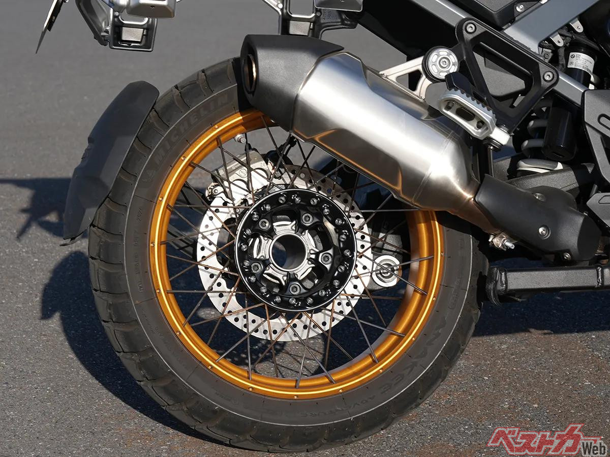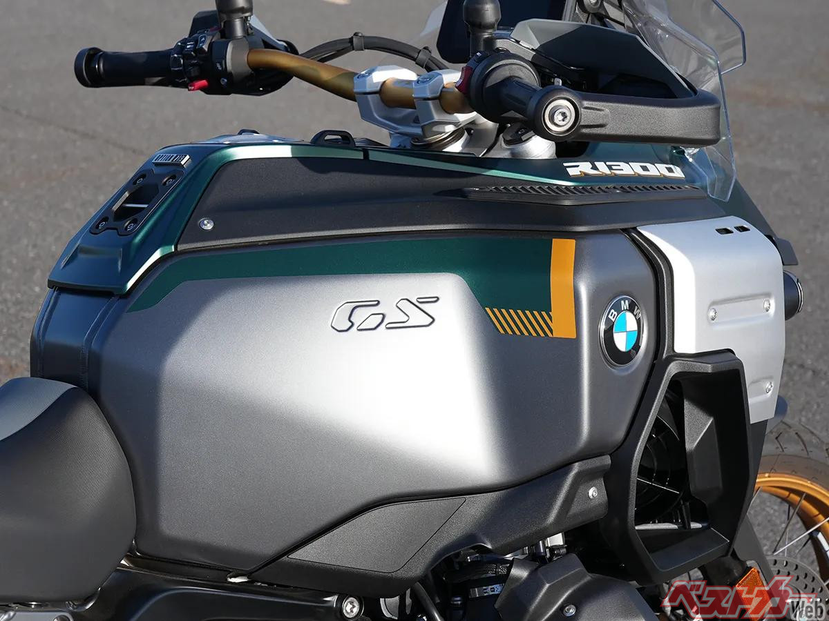 30Lという超大型フューエルタンクを装備する「R1300GS Adventure」は、R1300GSよりもさらに大きな威圧感を感じさせる。R1300GS Adventureには停車時や低速走行時には、シート高が30mm低くなり、走り始めると自動で車高を30mmアップさせるアダプティブ車高制御が装備される。しかし、跨ってみるとR1300GSよりも足つき性は悪く、重量もあるので車体を起こす際にはより緊張する。しかし、一度起こしてしまうと急に車体は軽く感じられ、外から見ていた時はあれほど大きく感じていたフューエルタンクもまったく気にならない。そして、走り出してしまうとR1300GSと同様に、ハンドリングの軽快さが大きさや重さを全て忘れさせてくれる。そして、低速から豊かなトルクを発生するエンジンはライダーを含めて優に300kgを超える車体を力強く加速させ、ASAの「D」モードはスロットルの開け方に合わせて適切な変速を行なってくれる。アダプティブ車高制御の作動はあまりにも自然で、試乗を終えるまでその存在すら忘れていた。30Lのフューエルタンクは600キロに迫る航続距離を持つことになるが、その安定感や防風性はガソリンが切れるまで一度も止まることなく走り切ってしまえるのではないかと思わせた。