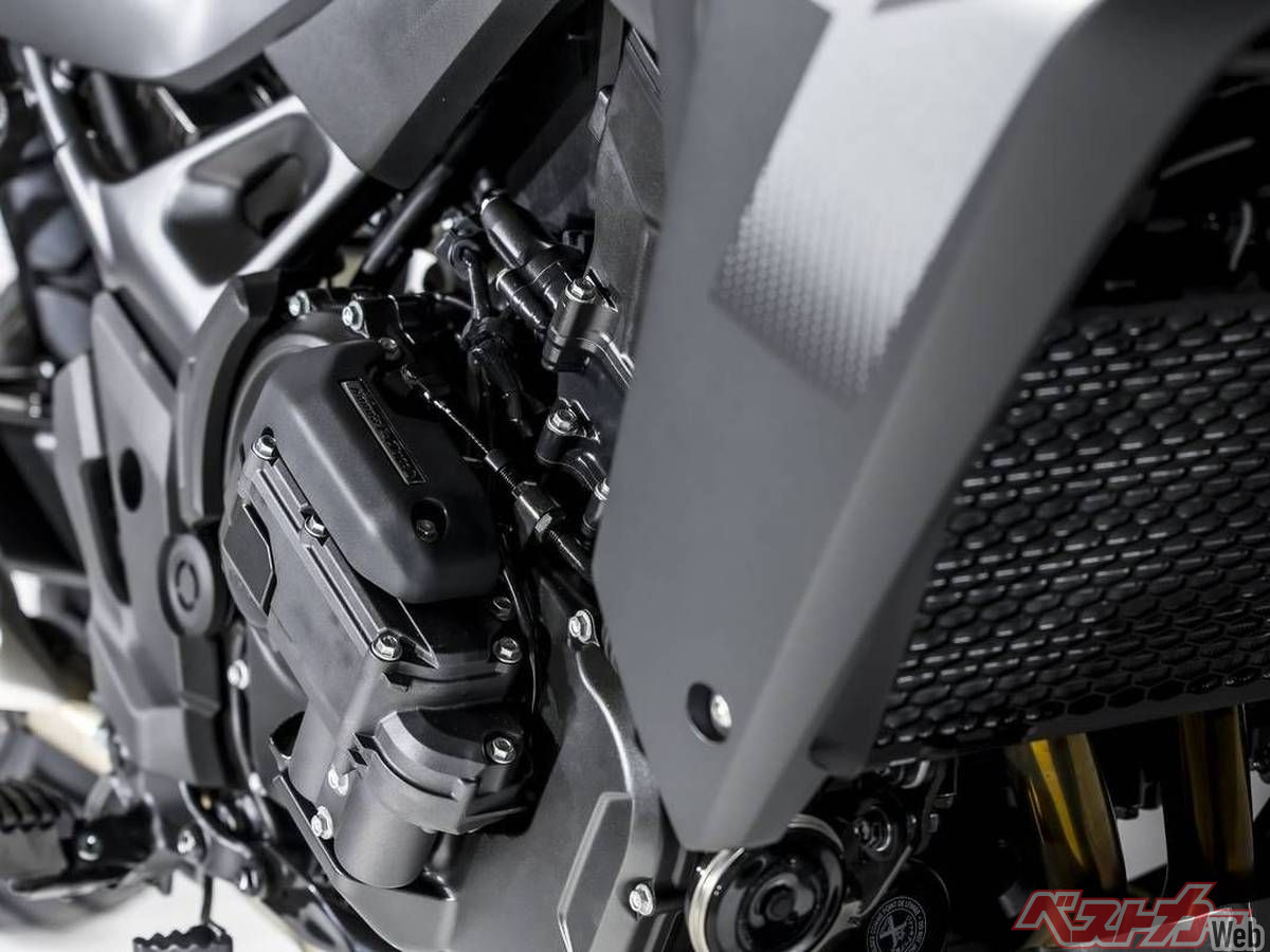 さらに、シフトダウン時には半クラッチ制御とTBWによるエンジン回転数の同期が連動し、変速ショックを大幅に低減させる仕組みを導入した。急減速や路面の凹凸でリアタイヤが跳ねる場面においても、前後輪の速度差を検知して半クラッチを介入させることで車体の安定性を保持する。悪路やオフロードでの後輪スリップ時であっても、シフトペダルのみで適切な変速を行える制御技術は、冒険のフィールドをさらに広げてくれるに違いない。システムの構造面では、従来のユニットから進化を遂げ、リフト機構を2軸化することでアクチュエーターの前方配置を可能にした。エンジンの基本構造を大きく変えることなくシステムをコンパクトにまとめられたレイアウトは、車体のバランスを損なわない優れた設計といえる。市街地から高速道路、そして峠道から未舗装路まで、多様なシチュエーションに応じたきめ細やかな制御が、ライダーに雄大なスケールのロングツーリングを約束する。