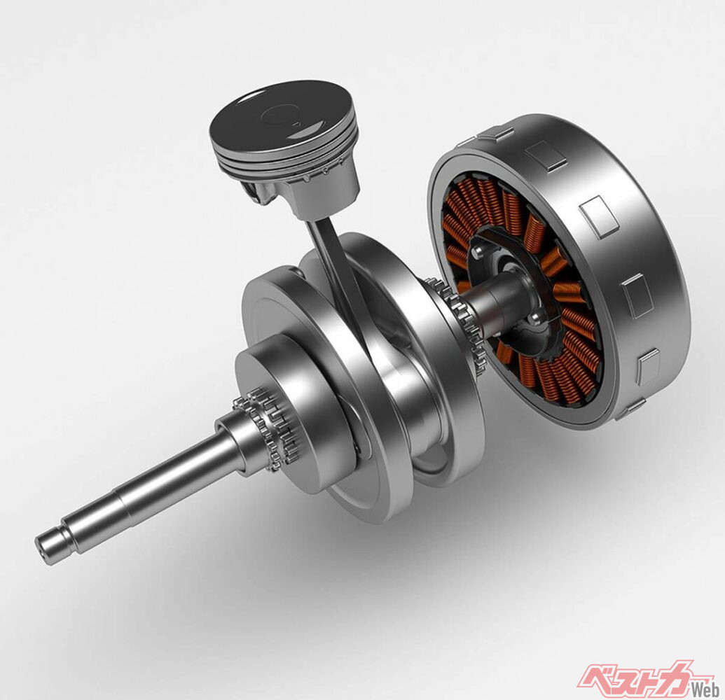 モーターとクランクシャフトを直結したSMG機構。坂道やタンデムなどでモーターがエンジンをアシストして力強く駆動する。