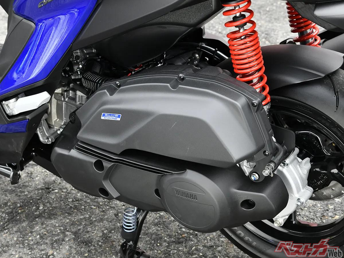 パワーユニットはシグナス グリファスからキャリーオーバーとなるBlue Coreエンジンで、水冷4ストロークSOHC4バルブ単気筒で排気量は124cc。始動モーターとジェネレーターを一体化したSMG(スマートモータージェネレーター)を搭載し、ジェネレーターを始動モーターとしても活用することで始動モーターと減速ギアが不要となっている。