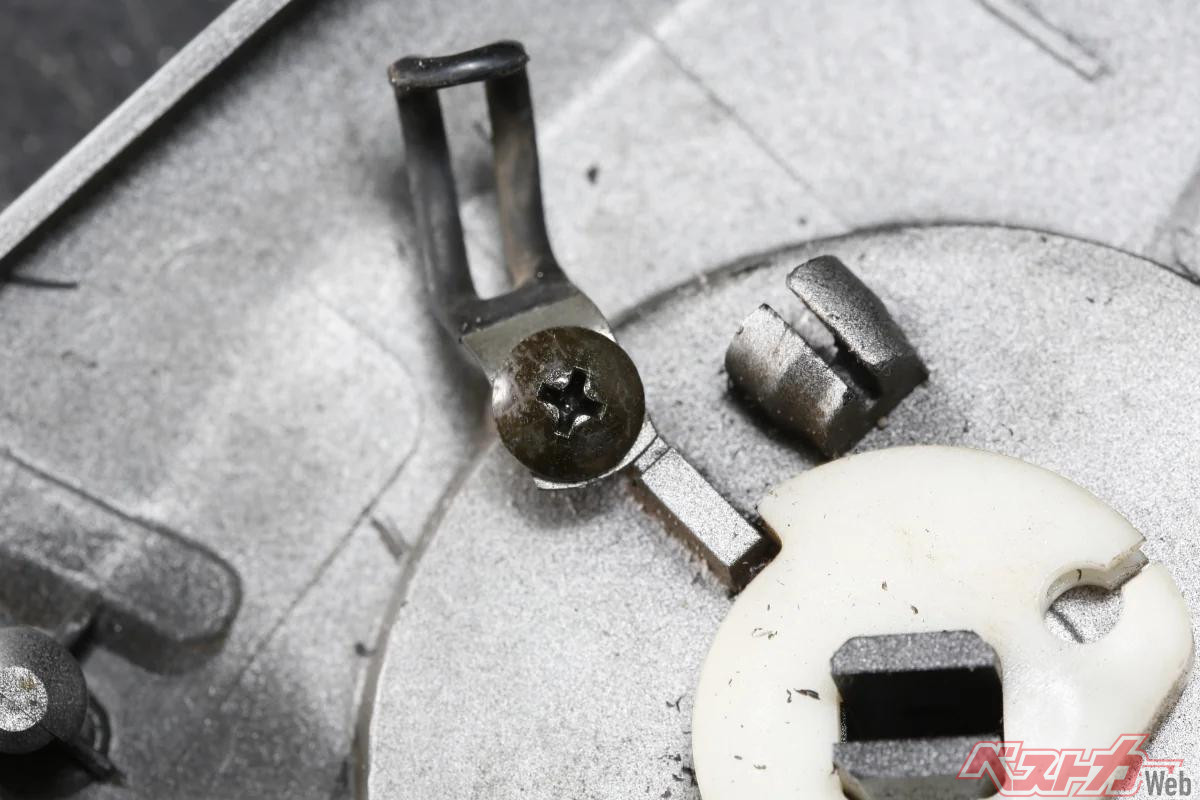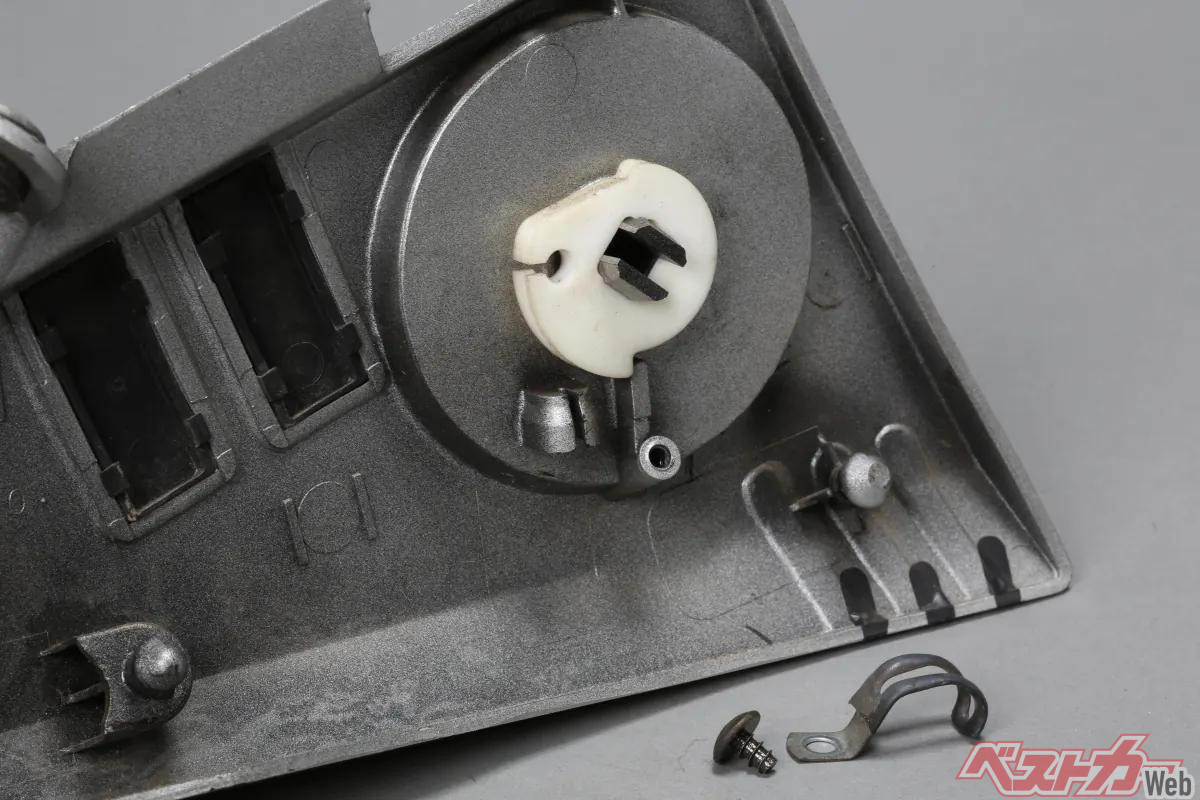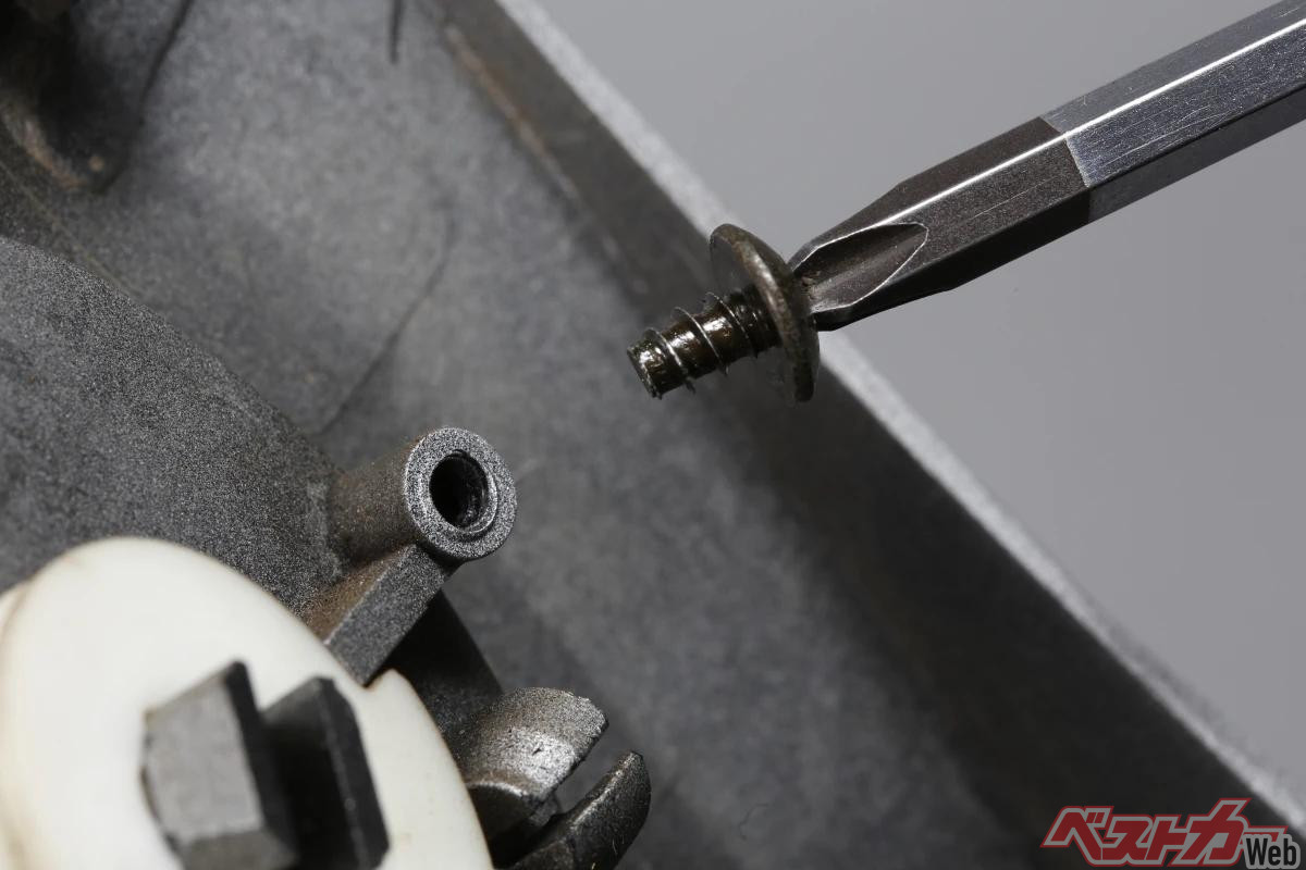 カウル類のパネル接合部に使われることが多いツメもその一例で、経年劣化した中古車だとロックを外す際にヒビが入ったり割れることも珍しくありません。また樹脂素材に直接雌ネジが切ってある部品では、締め付けの繰り返しや過大なトルクでネジ山が摩耗し、いわゆる「ネジが上がる(バカになる)」状態になることが少なくありません。