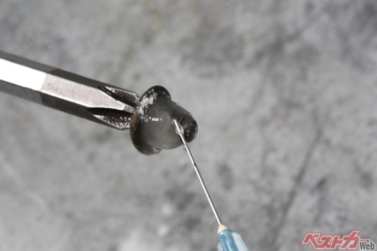 ボルトやナットで固定した部品の脱落を防ぐには、適正なトルクで締め付けることが重要です。しかしこの「適正」がくせ者で、ついつい過大な力=オーバートルクでグイグイ締め付ける人も少なくありません。強度の高い金属製のボルトやナットなら少々のことでは音を上げませんが、樹脂部品だとネジ山がナメてしまうこともあります。そんな時に頼りになるのが、粉末と液体の化学反応で硬い樹脂になるプラリペアです。割れた部品の張り合わせや欠損部分の再生で力を発揮するプラリペアは、雌ネジの再生でも非常に効果的です。