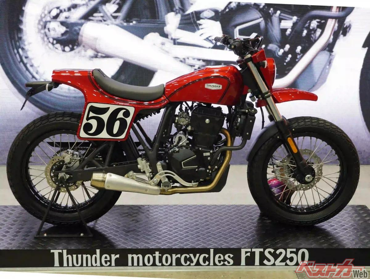 サンダーモーターサイクルズが新作トラッカー「サンダー FTS250」を初公開! ストリートに映えて走りも軽快だと!?【東京MCショー】【画像ギャラリー】