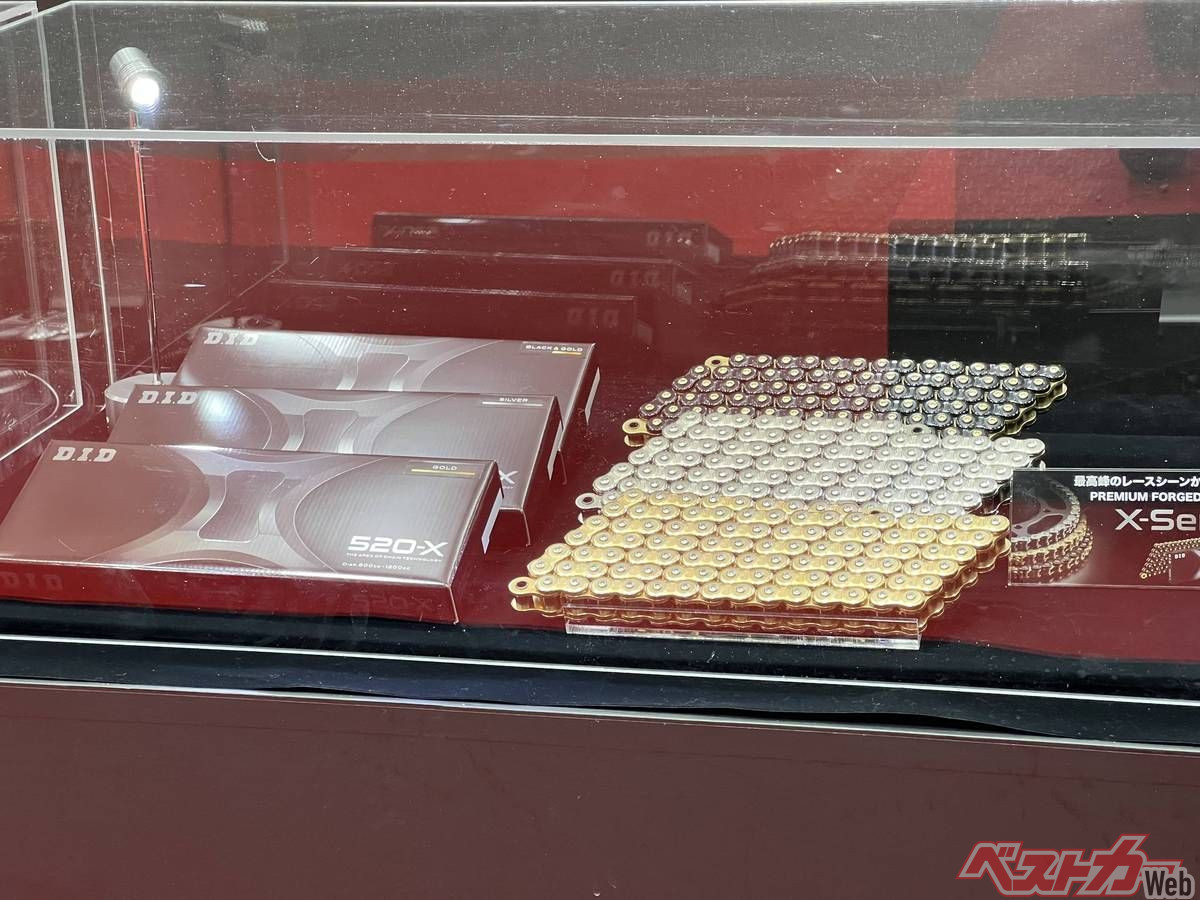 大盛況の中幕を閉じた東京モーターサイクルショー2026。日本を代表するチェーンメーカー・D.I.Dのブースでは注目の新製品が展示されていた! なんとGPマシン採用の技術を投入した超軽量&高剛性の「鍛造プレート」チェーンが市販化するのだ。さらに話題の「EVAレーシングチェーン」にも新作が登場! 現地写真でお伝えしよう。