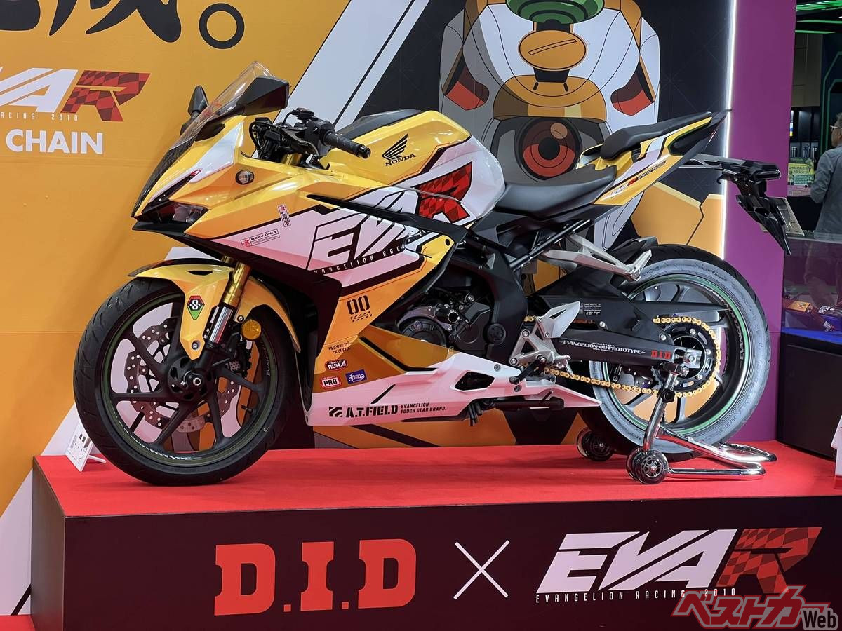 すっかりおなじみ「EVA RACING×D.I.D」コラボマシンが今年も登場。イエローが眩しい「零号機」カラーのCBR250RRだ。