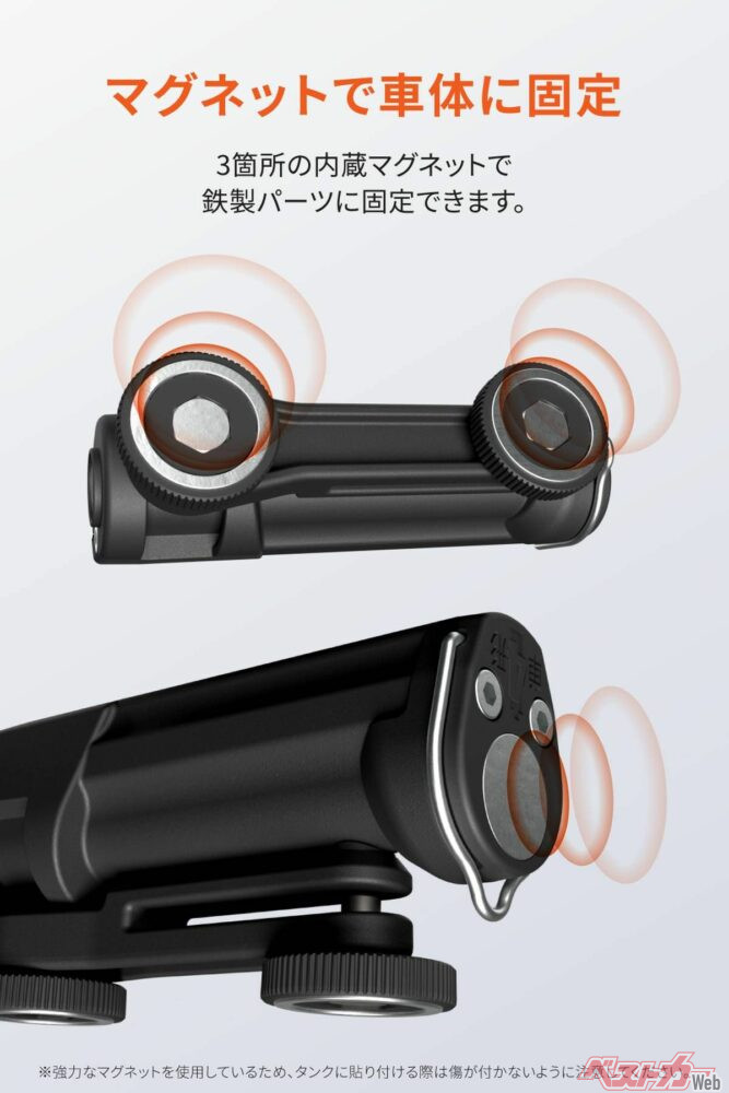 114mmのコンパクトサイズ! マグネット&アーム&クリップでどんなバイクにも対応