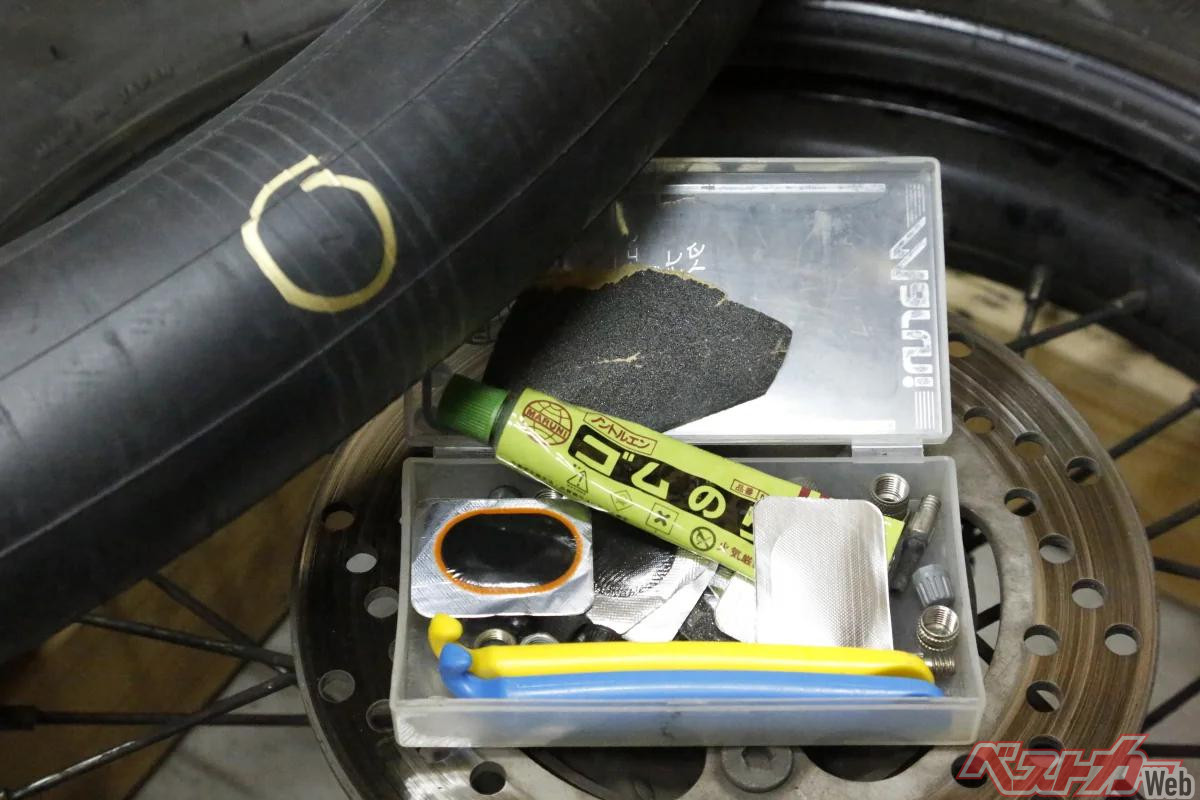 - ポイント2・チューブタイヤのパンクで使用する修理キットはバイク用も自転車用も基本的に同じ